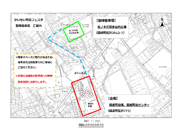 (注)駐車スペースに限りがあります。徒歩または自転車でのご来場にご協力ください。