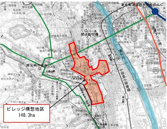 この構想は、新たなまちづくりポテンシャルの極めて高い南足柄市と開成町にまたがる地区について、両市町が行政界を越えた一体的な土地利用を図るための方針を示すとともに、足柄地域における新しい産業集積の在り方を明示し、産業の活性化や地域振興など自立した地域づくりの長期的行政運営の指針となるものです。